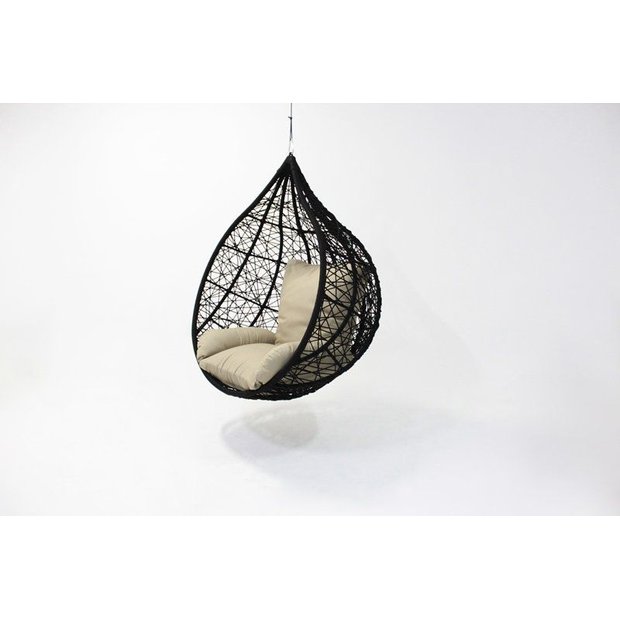 Balanço suspenso formato pingo - Fibra sintética e tecido impermeável preto - pintura eletrostática para áreas externas e jardins