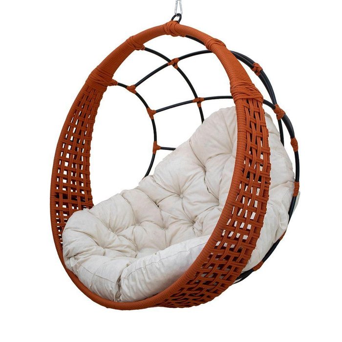 Balanço Suspenso Ninho em Corda Náutica e Aço Carbono com Pintura Eletrostática com Almofada Tecido Acquablock Impermeável, Mosquetão e Mola – Panero Móveis.