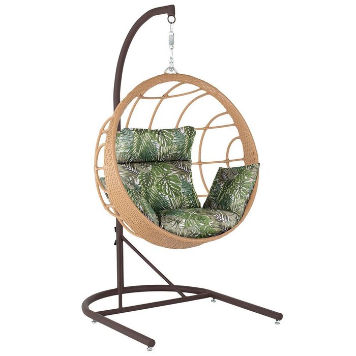 Balanço Suspenso Ninho Em Aluminie Fibra Ráfia e Suporte de Balanço U Marrom, Tecido Impermeá