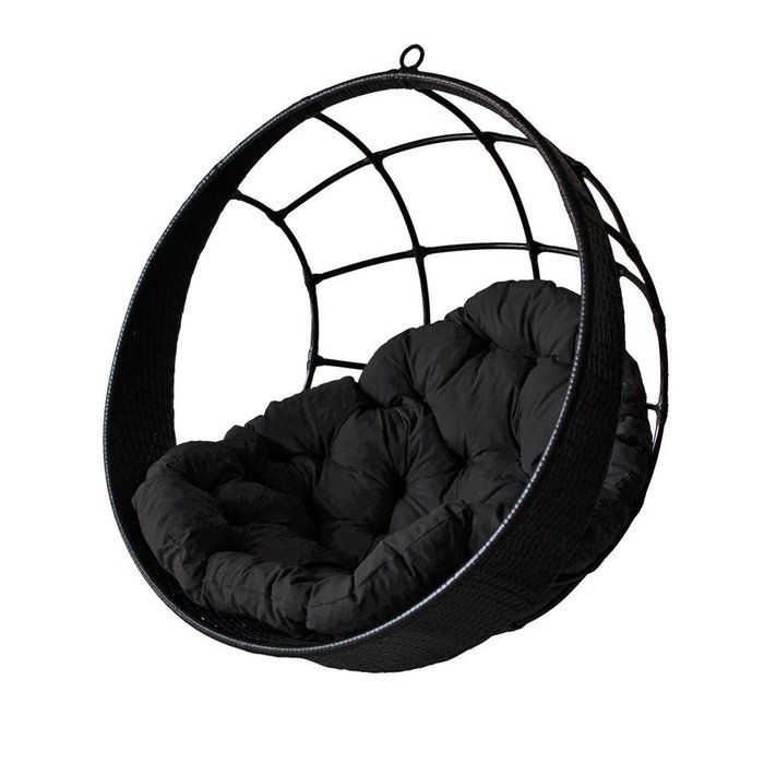 Balanço Suspenso Ninho Em Fibra Sintética Artesanal E Almofada Preto