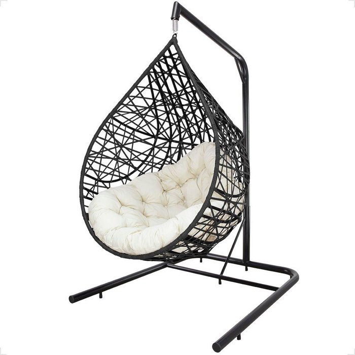Balanço Suspenso Ninho Gota com Mola, Mosquetão e Suporte para Terraço - Preto A1 Preto