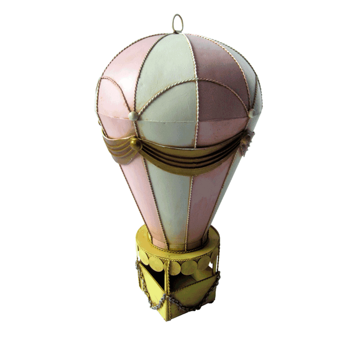BALÃO AR QUENTE 50CM MINIATURA METAL VINTAGE RETRO DECORATIVA - Rosa