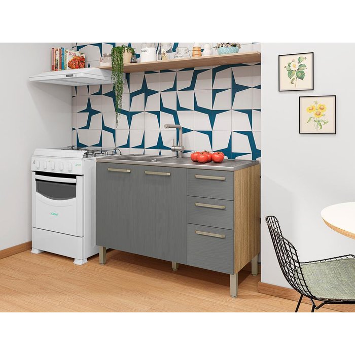 BALCÃO 1,2M 3 PORTAS 2 GAVETAS SEM TAMPO MAD VERSALHES FREIJÓ GRISEste balcão foi pensado nos mínimos detalhes, para deixar a sua cozinha ainda mais moderna e cheia de estilo. Descrição do Produto:Material da Estrutura: MDP em 15 e 12 mm