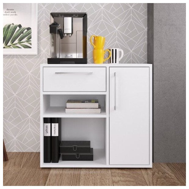Balcão 1 Porta 1 Gaveta 2 Nichos Est016 Criando Mobília Branco