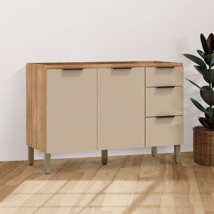 Balcão 1200 2 Portas 3 Gavetas Viv Aluminum Freijó/Vanilla