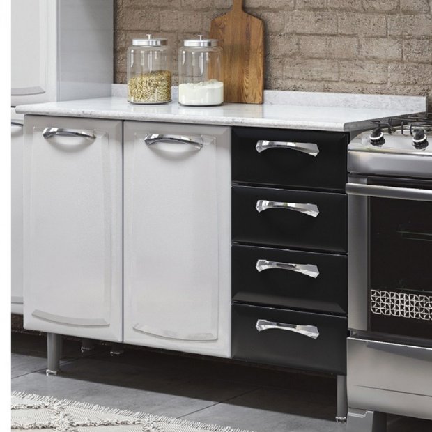 Balcão 120cm 2 Portas e 4 Gavetas Premium Itatiaia Branco/Preto