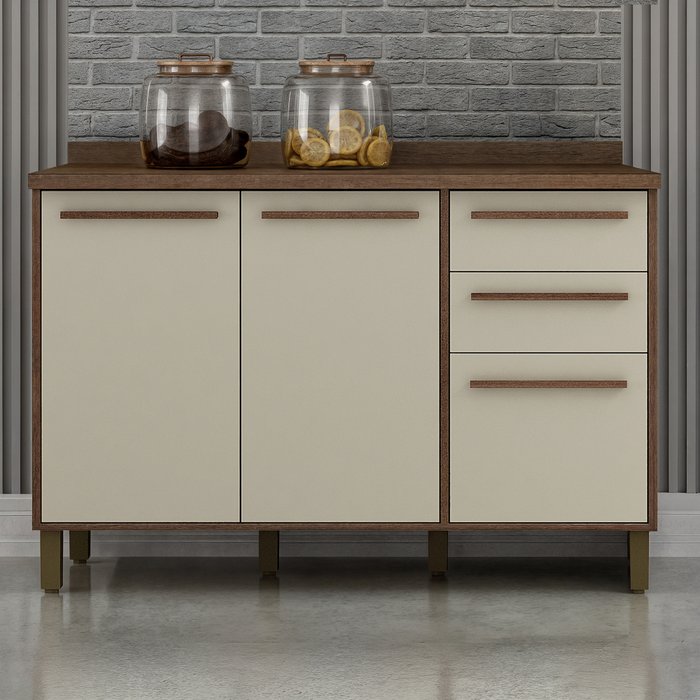 Balcão 120cm 3 Portas 2 Gavetas Salvador Cinamomo/Off White