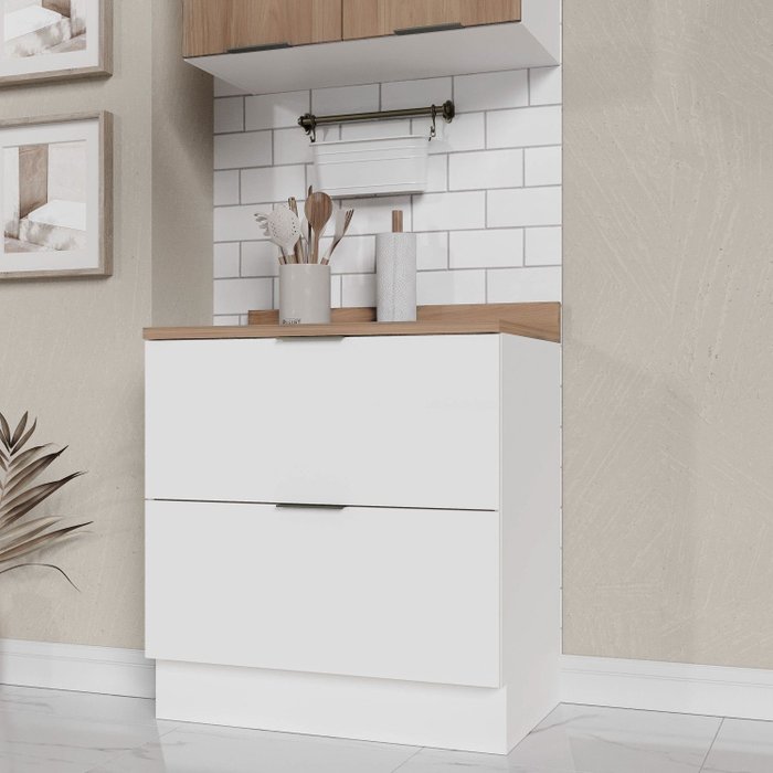 Balcão 2 Gavetões com Tampo e Rodapé Ipanema CabeCasa MadeiraOriginals Branco