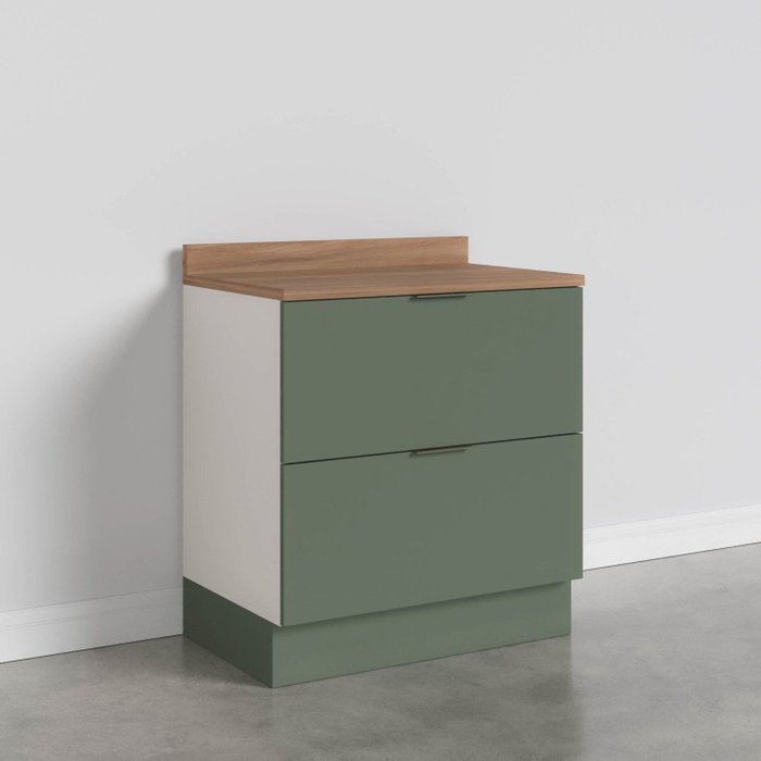 Balcão 2 Gavetões com Tampo e Rodapé Ipanema CabeCasa MadeiraOriginals Verde Folha/Branco