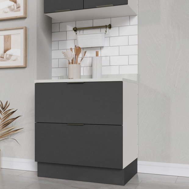Balcão 2 Gavetões com Tampo e Rodapé Ipanema CabeCasa MadeiraOriginals Grafite Trama/Branco