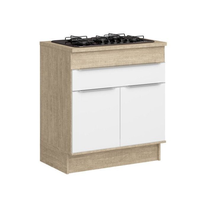 Balcão 2 Portas 1 Gaveta 80cm com Rodapé Modulado Slim Decibal Acácia/Branco