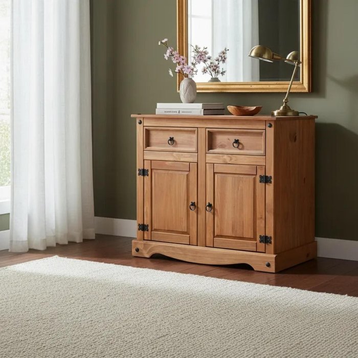 O balcão com 2 gavetas e 2 portas é ideal para trazer mais sofisticação ao ambiente. É inteiramente fabricado de madeira maciça, além de elegante é super fácil de limpar.
