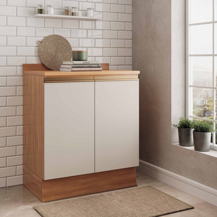 Balcão 2 Portas 80cm com Tampo Aroeira CabeCasa MadeiraOriginals Cinza Sereno/Cedro
