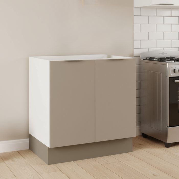 Balcão 2 Portas 80cm sem Tampo com Rodapé Puxador 150mm Ipanema CabeCasa MadeiraOriginals Fendi Trama/Branco