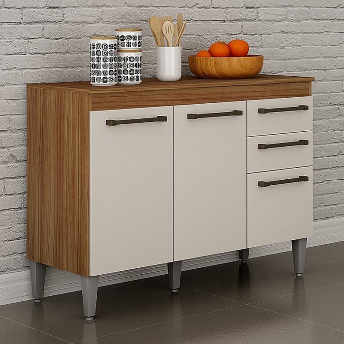 Balcão 3 Portas 2 Gavetas Alice CHF Carvalho/Off White
