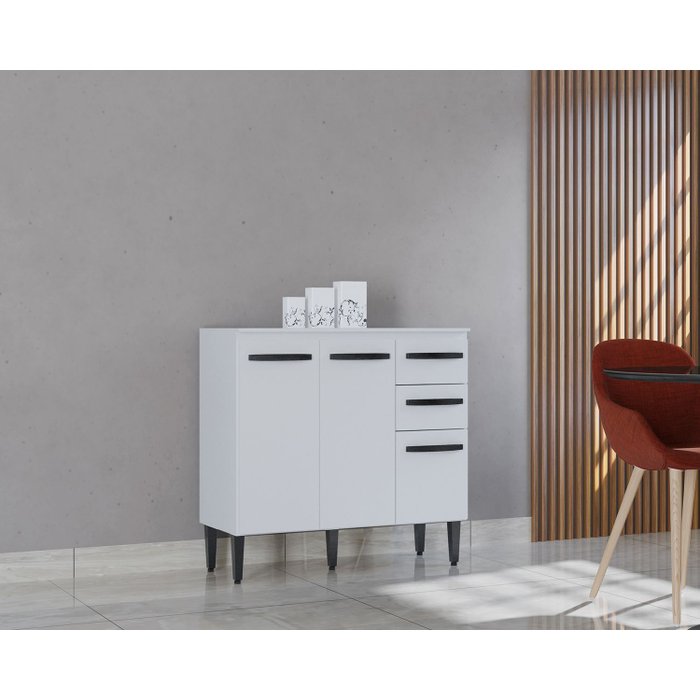 Balcão 3 Portas e 2 Gavetas Cozinha Armário Compacto 90cm Isadora - Branco