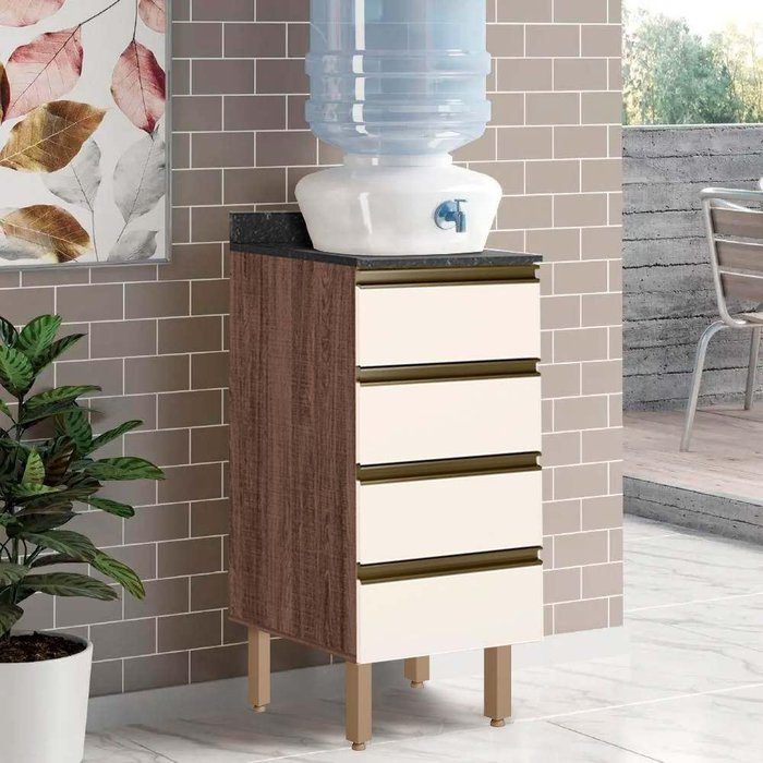 Balcão 4 Gavetas Para Cozinha Carvalho Rústico Off White Cetim Oberon Shop Jm Carvalho Rústico Off White Cetim