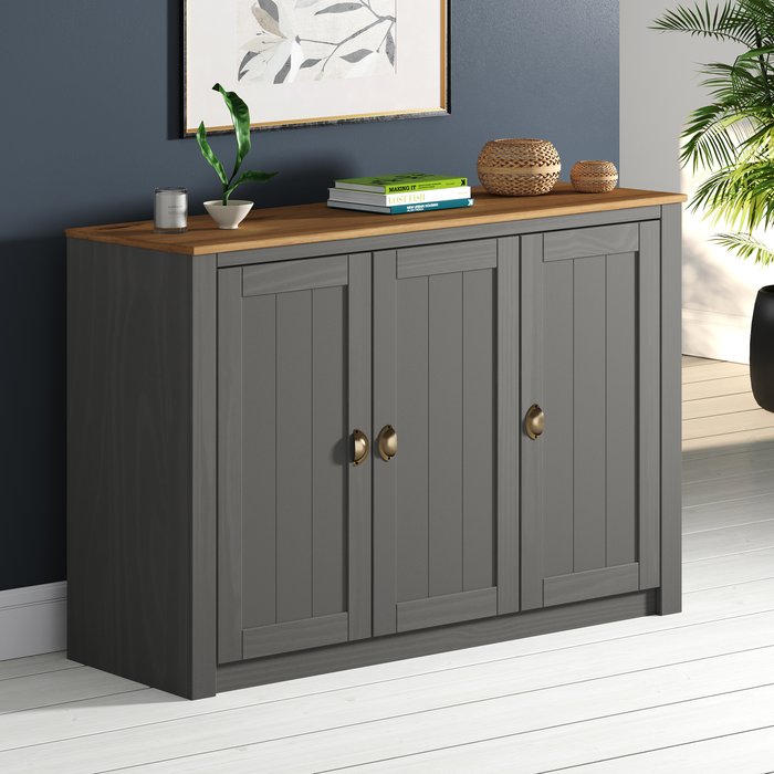 Balcão Aparador Buffet Madeira Maciça 3 Portas Bolton Cinza Cinza