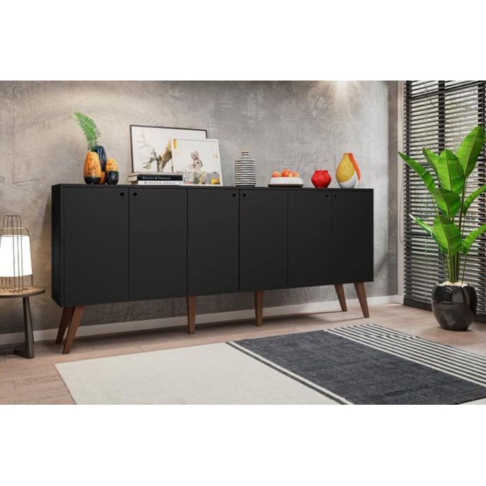Ver imagem 1 de Balcão Aparador Retrô 6 Portas Preto C/ Pés Palito Brienza