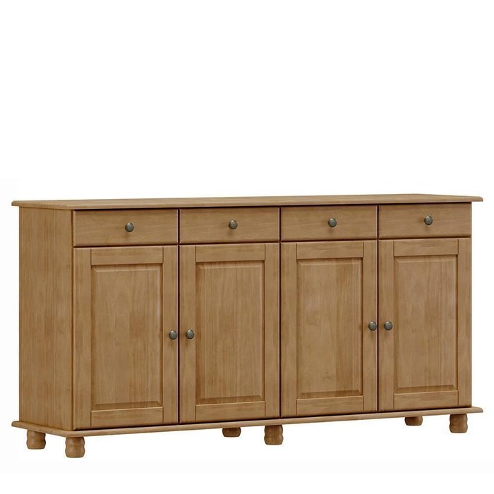 O Balcão Aparador Rubi da Finestra Móveis combina elegância e funcionalidade, sendo fabricado com estrutura em madeira maciça de pinus de reflorestamento e acabamento em pintura acetinada com verniz PU e UV. Conta com quatro portas equipadas com dobradiças com amortecimento e prateleiras internas em madeira maciça que suportam até 10kg distribuídos. Possui ainda quatro gavetas com corrediças telescópicas e capacidade para até 5kg cada, oferecendo amplo espaço para organização. Os puxadores metálicos em ouro envelhecido e os pés torneados em madeira maciça acrescentam um charme clássico ao design, tornando a peça ideal para salas de jantar, estar ou halls de entrada.