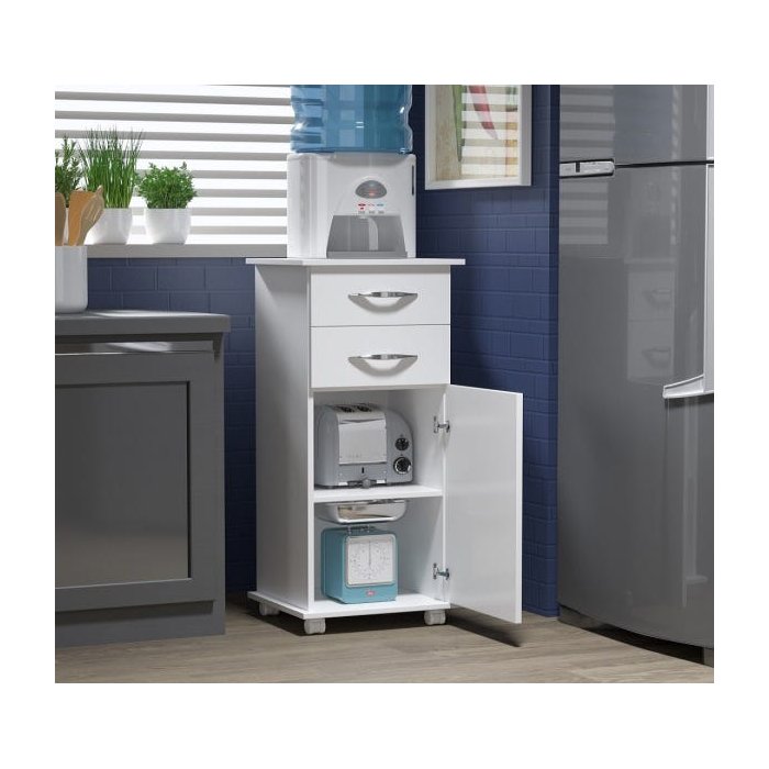 Para você que procura um móvel que ocupe pouco espaço e que ofereça beleza e praticidade a ClickForte desenvolveu este lindo armário, ideal para ajudar você na organização de sua cozinha, dispensa, lavanderia, com 02 gavetas espaçosas, 01 porta e com 01 prateleira interna, espaços suficientes para armazenamento de seus utensílios domésticos, materiais de limpeza, etc., além de rodinhas para facilitar sua locomoção na hora da limpeza cotidiana.