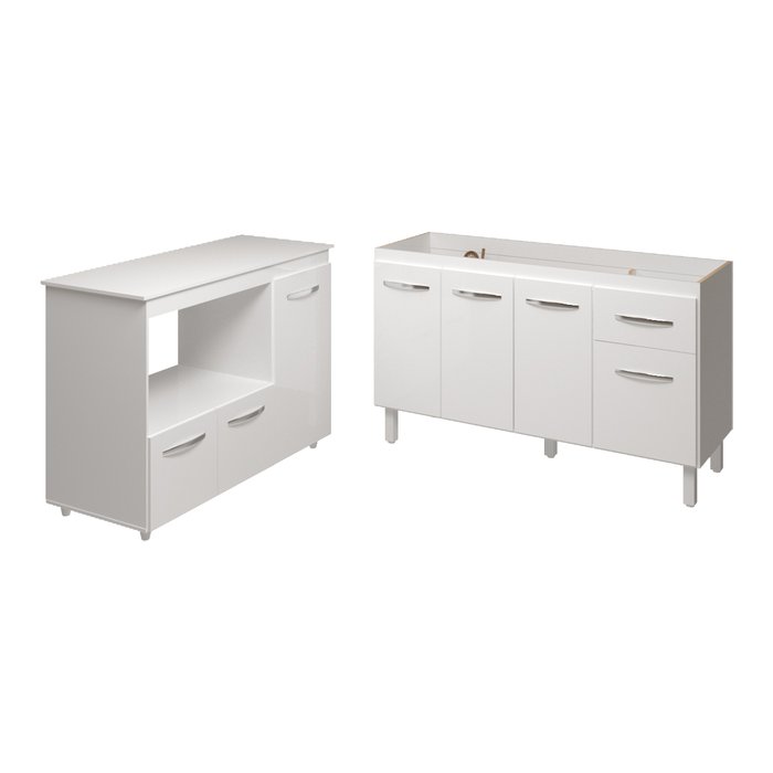 Balcão Armário Camila Cozinha Gabinete de Pia 140 Cm e Balcão para Forno Elétrico e Microondas Lilia