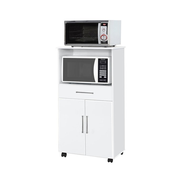 Balcão Armário Duplo Itália Branco para Cozinha Micro-ondas Forno 2 Portas e 1 Gaveta