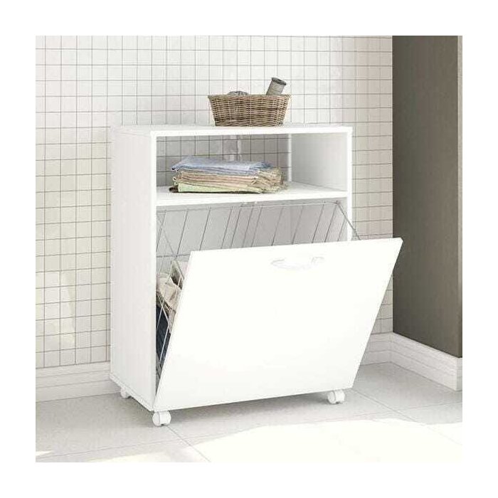 Quem gosta de roupa suja jogada no chão? Ninguém! Por isso o balcão com tulha existe. Ideal para o banheiro ou para a lavanderia, pois possui cesto aramado para colocar as roupas e rodízios para facilitar a sua movimentação.