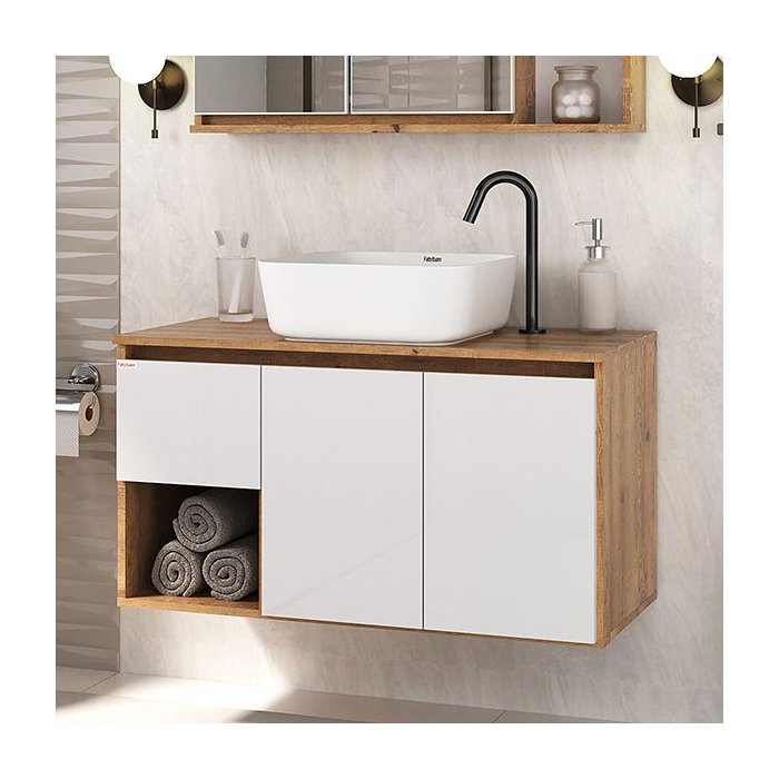Balcão Armário para Banheiro Apollo 90 Suspenso - Fabribam Gabinetes