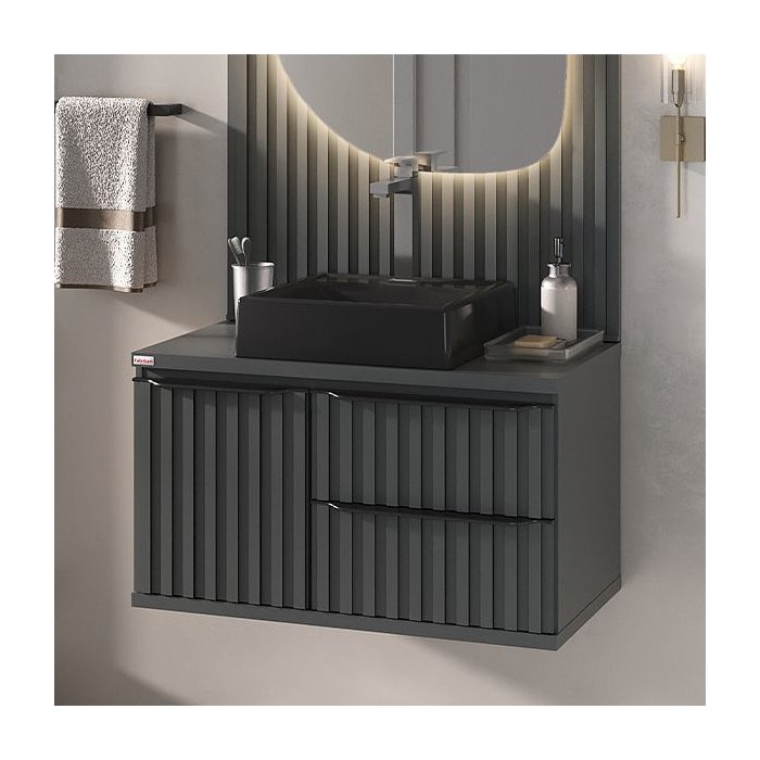 Balcão Armário para Banheiro Ripado Cecília Suspenso 78cm - Fabribam Gabinetes