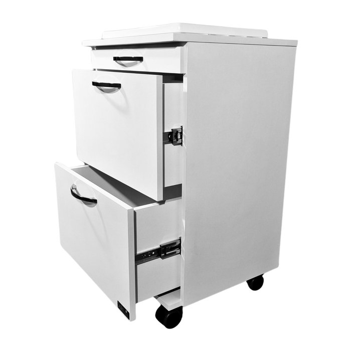 A DEKI MÓVEIS CLÍNICOS oferece mesas auxiliares com 2 (duas) gavetas, garantindo praticidade e organização no seu espaço de trabalho. Com essa configuração, é possível armazenar materiais e documentos essenciais de forma acessível, mantendo o ambiente sempre arrumado e funcional. As gavetas facilitam a separação de itens por categoria, otimizando o tempo e promovendo mais eficiência no dia a dia de consultórios e clínicas.