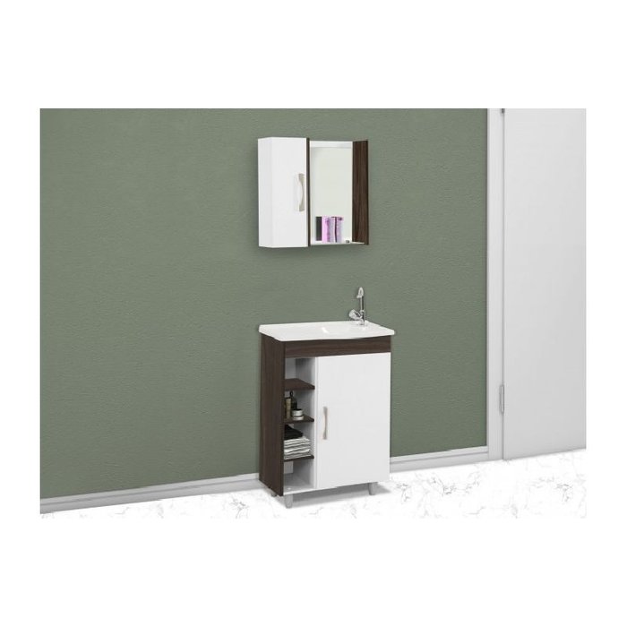 Possui uma composição integrada entre os padrões texturizados e madeirados, puxadores retos no padrão prata fosco mais a prateleira de vidro do espelheiro que completam esse conjunto, tornando-o sofisticado e aconchegante, sem deixar de lado a praticidade e facilidade de montagem, que é característica dos produtos A. J. Rorato.
