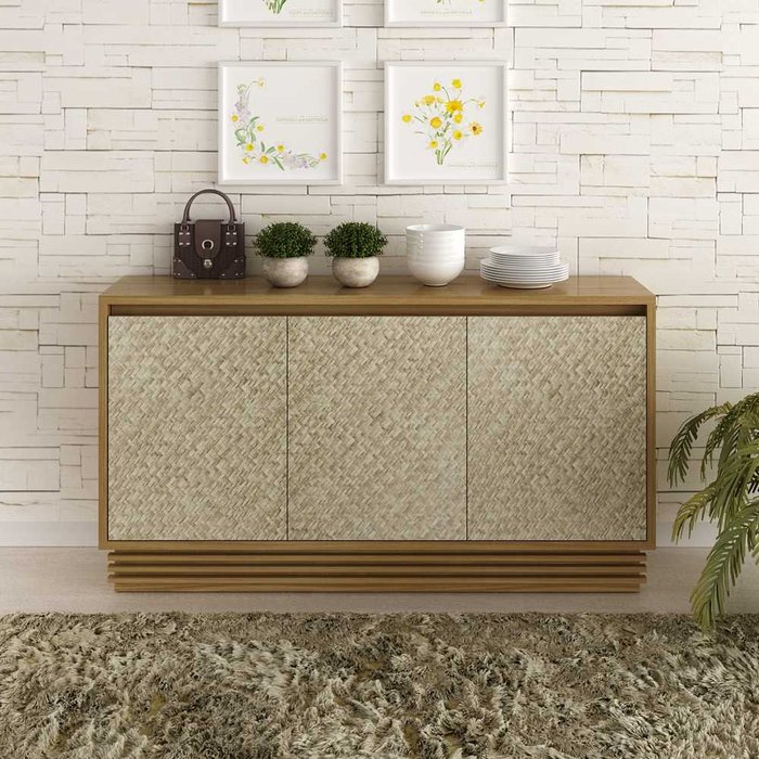 Balcão Buffet 1,60mt com Acabamento Palha Bb2611 Tecno Mobili Natural/palha