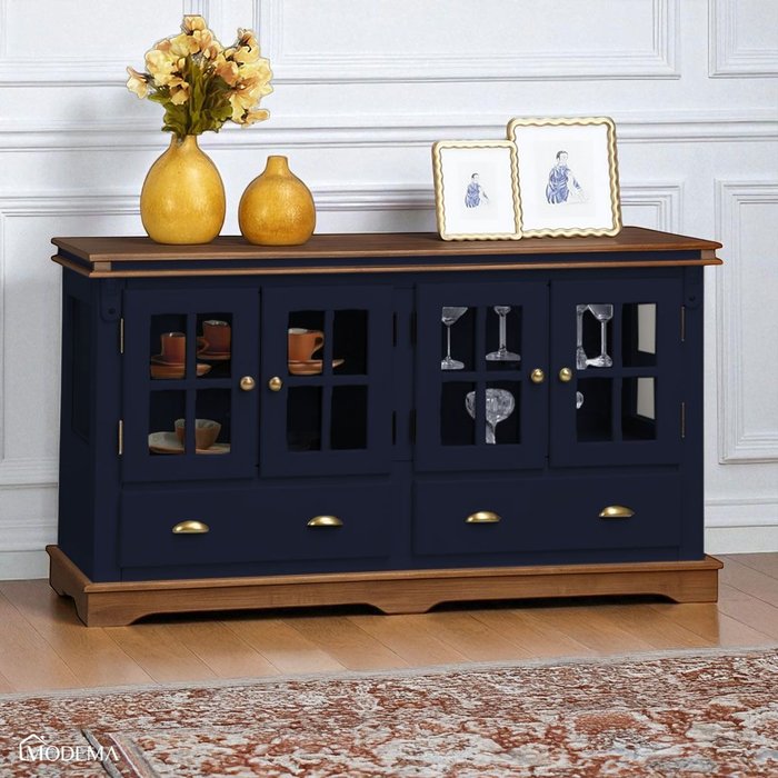 Balcão Buffet 4 Portas 2 Gav. Prateleiras em Vidro Manchester 2041 Linz Móveis - Azul Petróleo/imbui