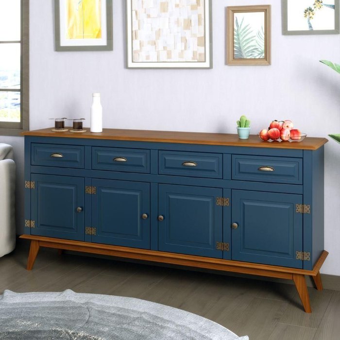 Balcão Buffet Aparador 4 Portas 4 Gavetas New Veneza Azul Petróleo Azul Petróleo