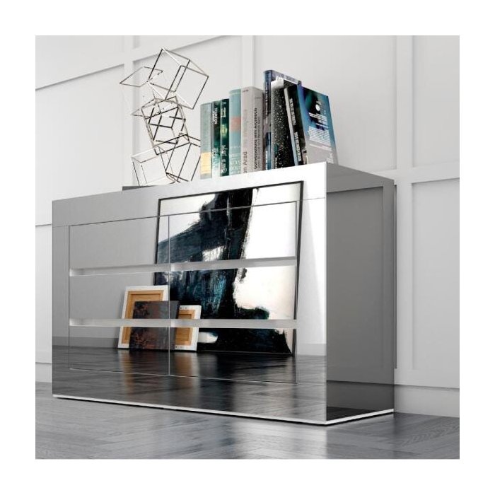 Balcão Buffet Aparador Branco Espelhado com Gavetas Tb292e Luxo