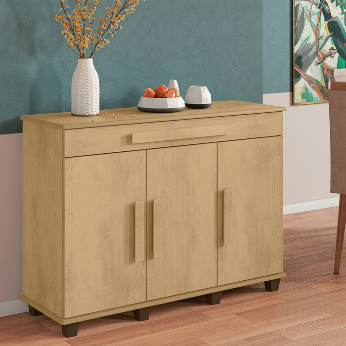 O Balcão Rubi RV Móveis é ideal para quem busca um móvel versátil, funcional e compacto, perfeito para sala de jantar, sala de estar, cozinha ou escritório. Com design moderno e acabamento resistente, aproveita bem o espaço e facilita a organização do dia a dia. Possui 3 portas e 5 prateleiras, oferecendo amplo armazenamento para louças, utensílios e objetos decorativos.