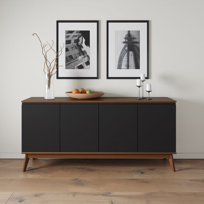 Balcão, Buffet, Balcão 4 Portas, Buffet 4 Portas, Buffet de Madeira Maciça, Armário Natural/Preto