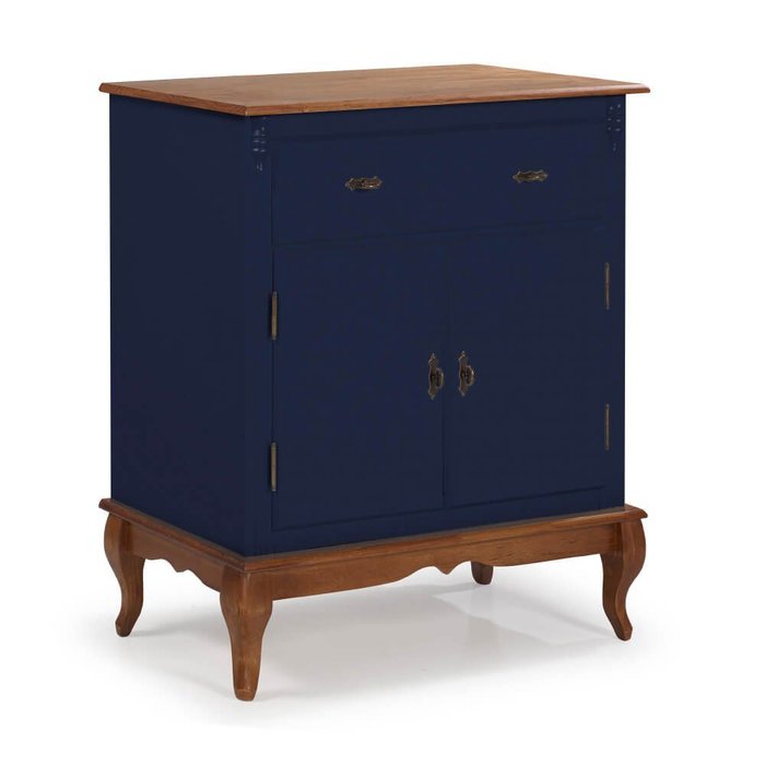 Balcão Buffet com 2 Portas e 1 Gavetas Pés Luis Xv 60629 Linz Móveis Azul Petróleo/imbuia Glazer