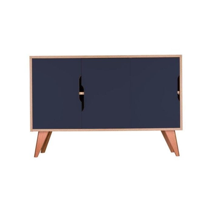 Balcão Buffet com 3 Portas Carvalho e Azul Marinho Carvalho Treviso (Madeira Clara) com portas Azul Marinho