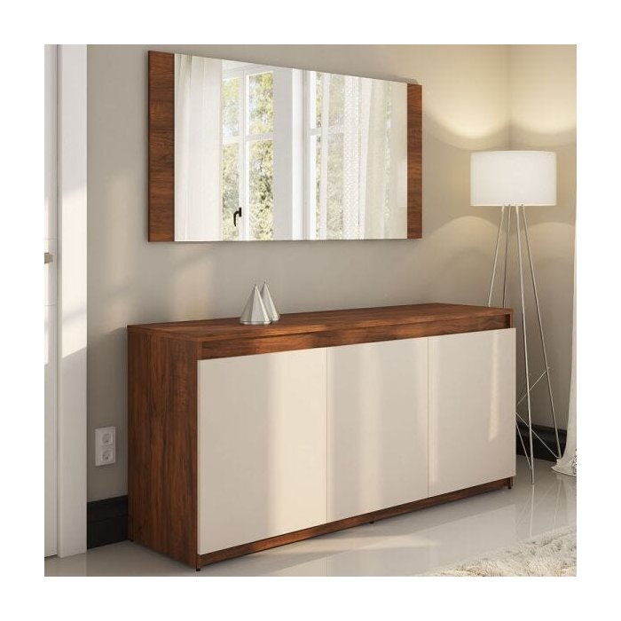 Balcão Buffet com Moldura 3 Portas Lirio Seda/Off-White Marrom
