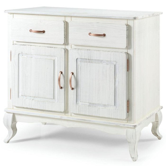 Balcão Buffet de Madeira com 2 Portas e 2 Gavetas Branco Envelhecido