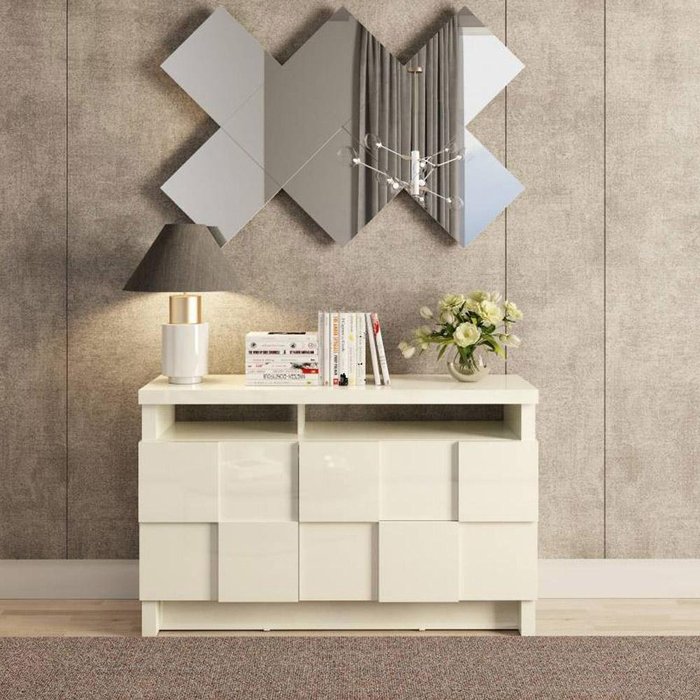 Cor: Off White Com 02 portas e 02 gavetas, seu amplo espaço de armazenamento possibilita um ótimo aproveitamento de espaço alinhando organização e design arrojado que transmite elegância ao seu ambiente!