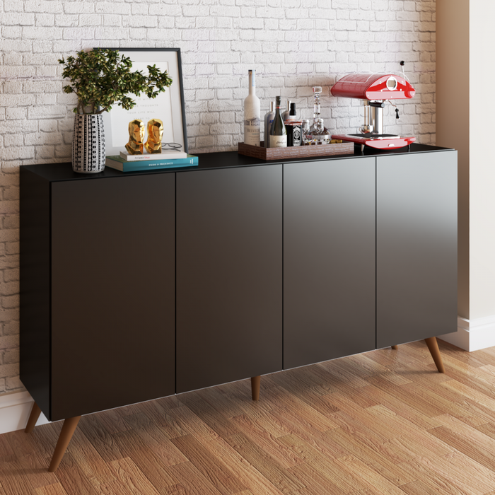 Balcão Buffet Iluminare 4 Portas Pé Retrô Black - Mobilarte Móveis