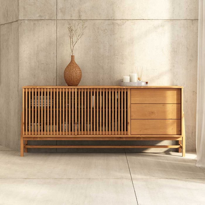 O Balcão Adamo 170 cm é uma peça atemporal, tendência perfeita para quem busca design refinado, armazenamento funcional e a durabilidade única da madeira maciça.