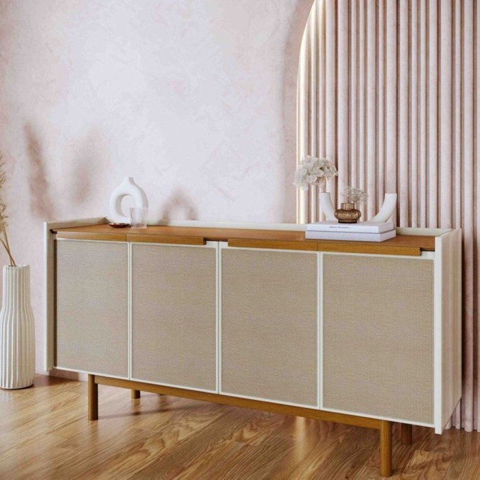 Balcão Buffet Sala Jantar Dune 4 Portas 1,80m Nature, OffWhite/Nature ou OffWhite