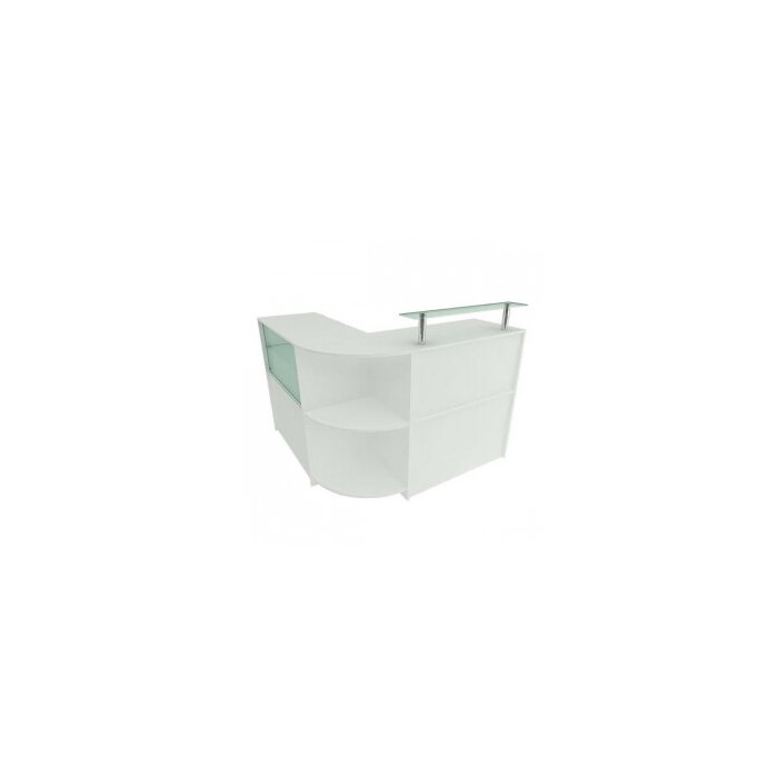 Balcão Caixa com Vitrine e Prateleira de Vidro em L Modelo New 134+134 x 95 x 45cm Comac