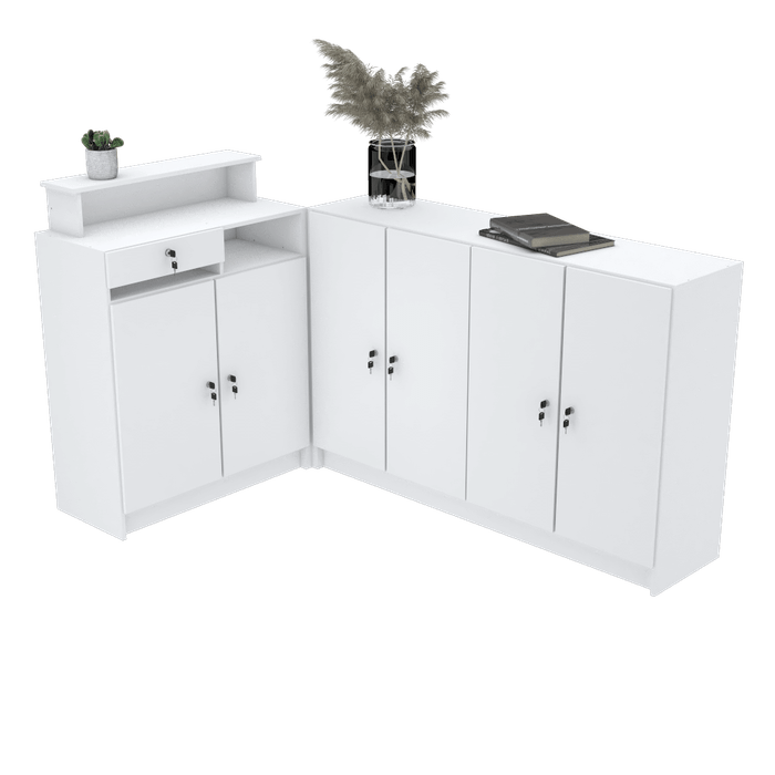BALCÃO CAIXA EM L COM PORTAS M315.B (LOJA, COMÉRCIO) MUNDI MOVEIS Branco