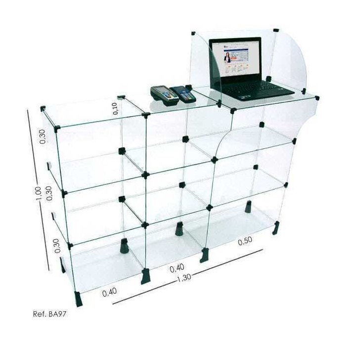 Balcão Caixa Modulado em Vidro - 1,30 x 1,00 x 0,30