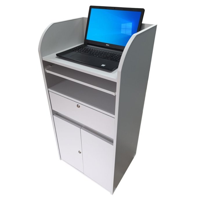 Balcão Caixa para Notebook Loja com Prateleira para Teclado: Cinza Cristal